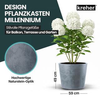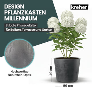 2 x Kreher Pflanzkübel 'Millennium' 80 Liter, rund in Grau
