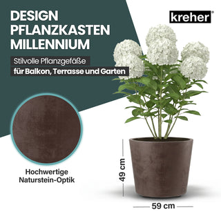 2 x Kreher Pflanzkübel 'Millennium' 80 Liter, rund in Braun