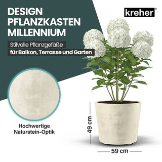 2 x Kreher Pflanzkübel 'Millennium' 80 Liter, rund in Creme Weiß