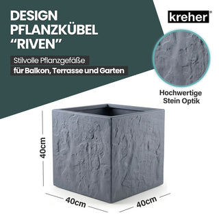Pflanzkübel 'Riven' in Anthrazit - Blumentopf aus Kunststoff - Steinoptik - frostfest & UV-beständig - 40x40x40 cm
