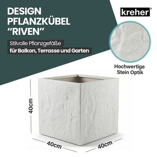Pflanzkübel 'Riven' in Hellgrau - Blumentopf aus Kunststoff - Steinoptik - frostfest & UV-beständig - 40x40x40 cm