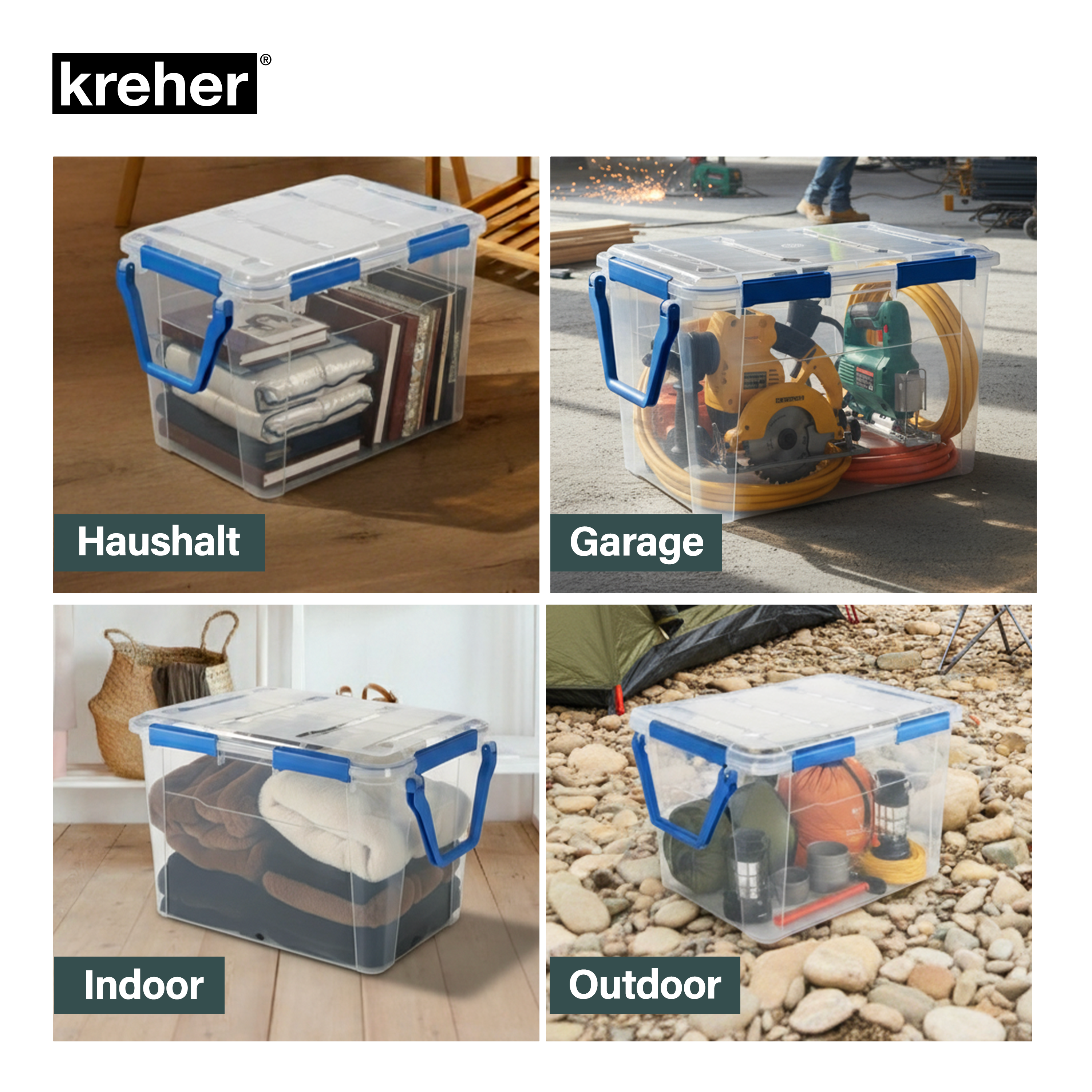 Mit 100 Litern Fassungsvermögen bietet diese wasserdichte Aufbewahrungsbox (IP67) genügend Platz für Campingausrüstung, Werkzeuge, Kleidung, Dokumente, Elektronik und mehr. Perfekt geeignet für Haushalt, Garage, Werkstatt, Camping‐, Boot‐ oder Outdoor‐Einsätze.