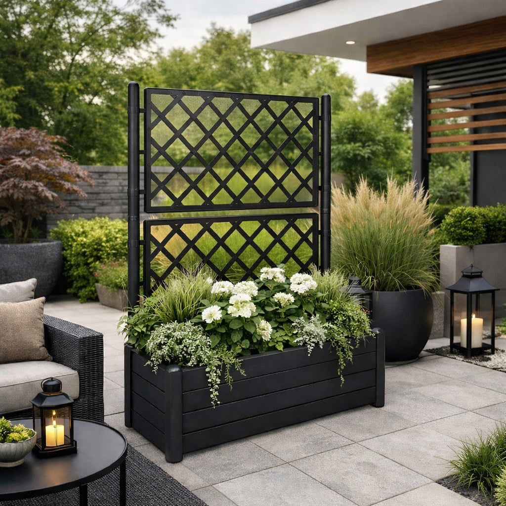 Mit seinem breiten Format und modernem Design ist dieser Pflanzkasten ein echter Blickfang im Garten, auf der Terrasse oder dem Balkon. Er lässt sich ideal mit anderen Pflanzkästen oder Spalieren kombinieren und verleiht Ihrem Außenbereich eine individuelle Note.