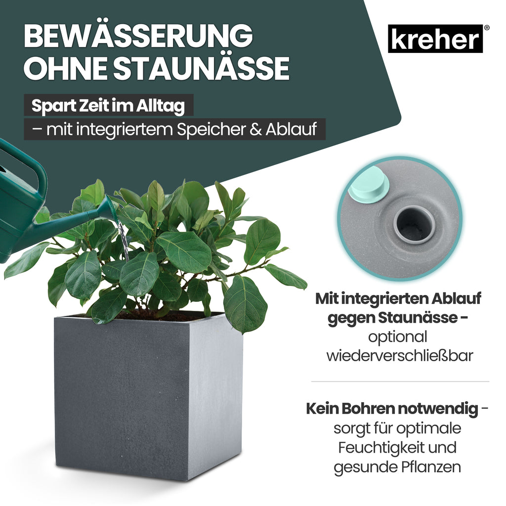 Dank des integrierten Wasserspeichers und des Entwässerungsstopfens wird die Pflege Ihrer Pflanzen zusätzlich erleichtert. Gefertigt aus robustem Kunststoff, ist der Pflanzkübel nicht nur witterungsbeständig und langlebig, sondern auch besonders pflegeleicht. Der Kreher 'Millennium' ist ein echter Hingucker, der stilvolle Akzente setzt und Ihre Pflanzen perfekt in Szene setzt.