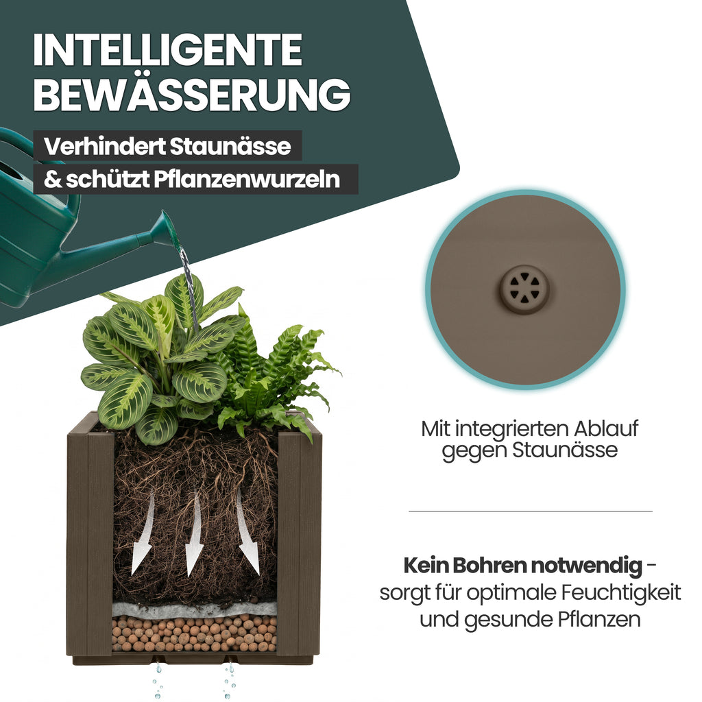 ELEGANTER PFLANZKASTEN FÜR IHREN AUSSENBEREICH - Unser großzügiger Pflanzkasten aus robustem Kunststoff ist die perfekte Ergänzung für Ihren Garten, Ihre Terrasse oder Ihren Balkon. Mit Maßen von 36 x 36 x 36 cm bietet er ausreichend Platz für eine Vielfalt an Pflanzen, Blumen und Kräutern.