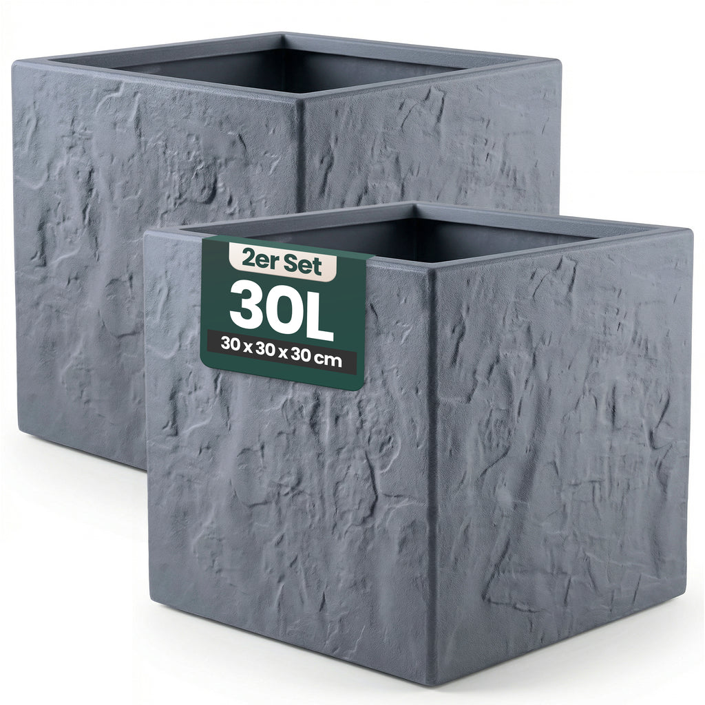 2 x Pflanzkübel 'Riven' in Anthrazit - Blumentopf aus Kunststoff - Steinoptik - frostfest & UV-beständig - 30x30x30 cm