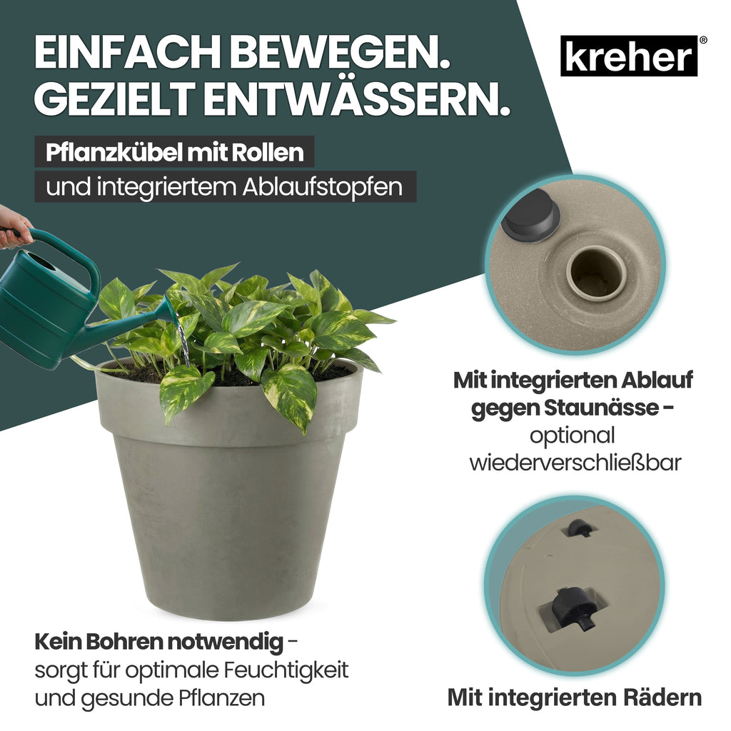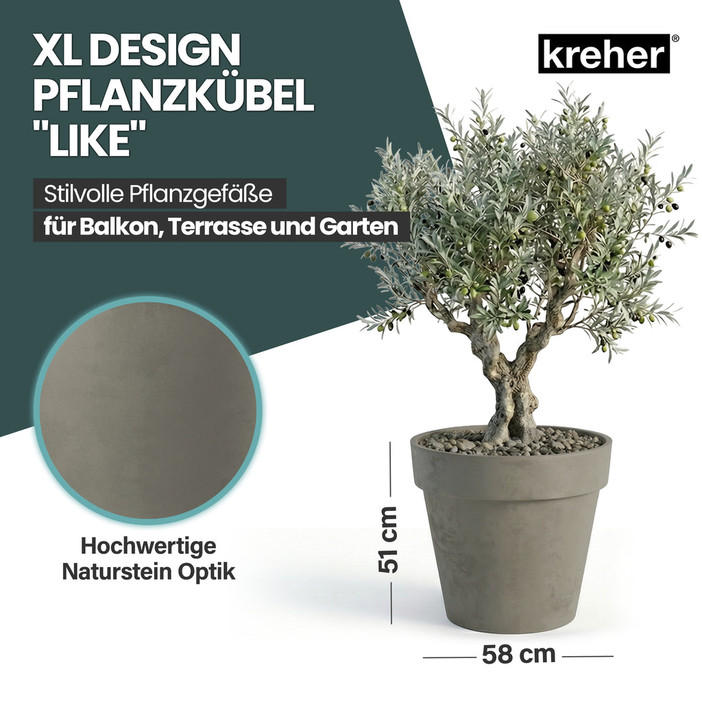 ALLE INFO'S - XL Pflanzkübel 'LIKE' | Maße (ØxH) in cm: 58 x 51 cm | Volumen: 90 Liter | Material: Robuster Kunststoff | Rollbar [optional zu montieren] | Farbe: Braun | Mit Entwässerungsstopfen | Moderne Naturstein Optik | Pflegeleicht, abwaschbar und leicht zu reinigen | UV- und Witterungsbeständig | Wetterfest, Rostfrei | In- und Outdoor