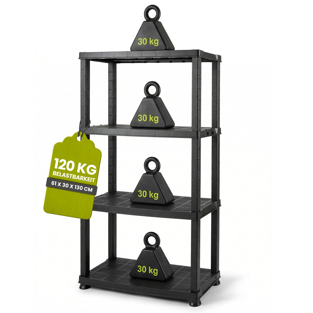 Kunststoffregal „Neo“ mit 4 Böden - 30 kg pro Boden - Schwarz