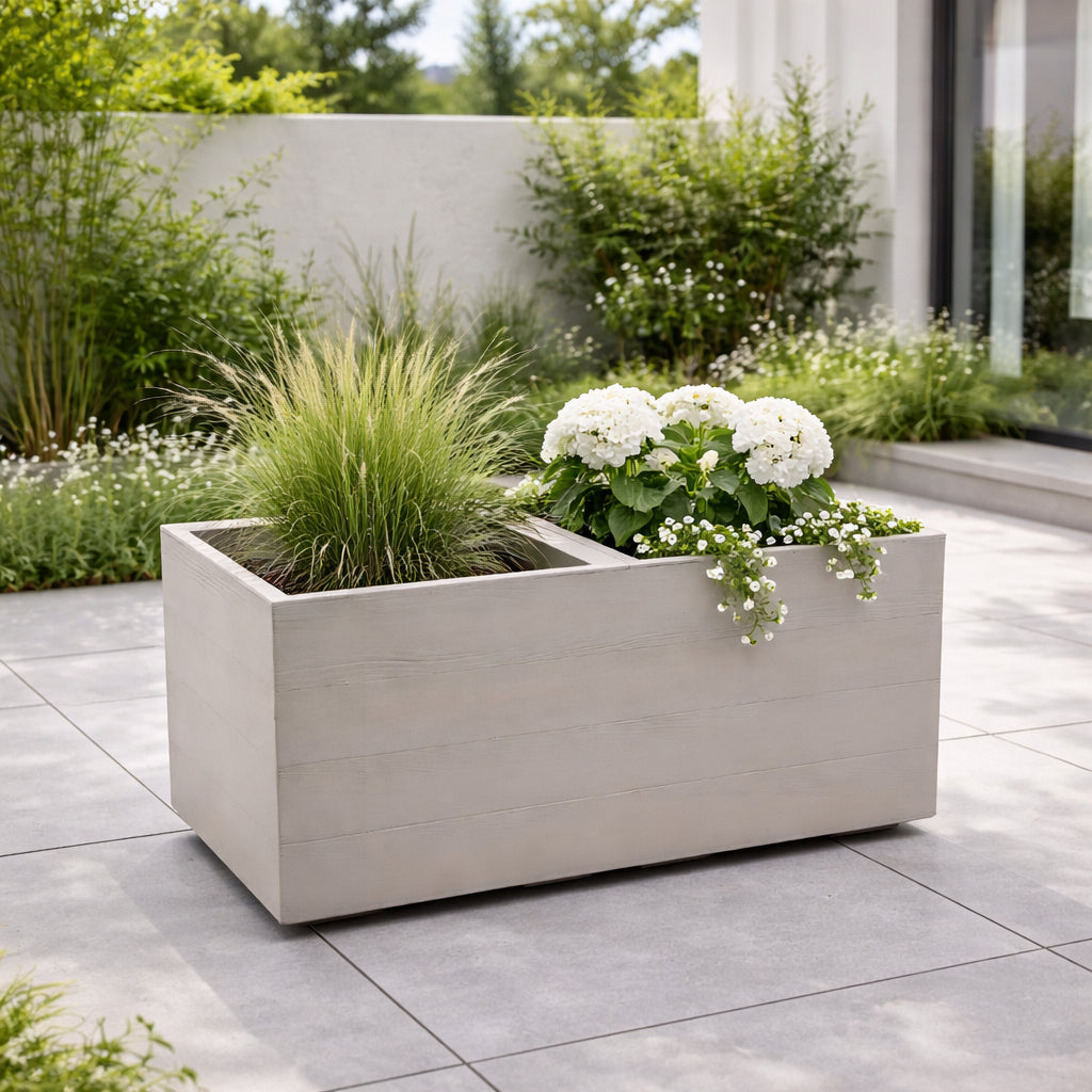 Maximieren Sie Ihren Garten mit dem rechteckigen oder quadratischen Design. Der Pflanzkübel ist eine elegante Ergänzung für Ecken und modernes Ambiente. Er ist einfach mit Wasser abwaschbar und bietet die perfekte Verschmelzung von Form und Funktion. Ideal auch als Geschenk für Familie und Freunde.