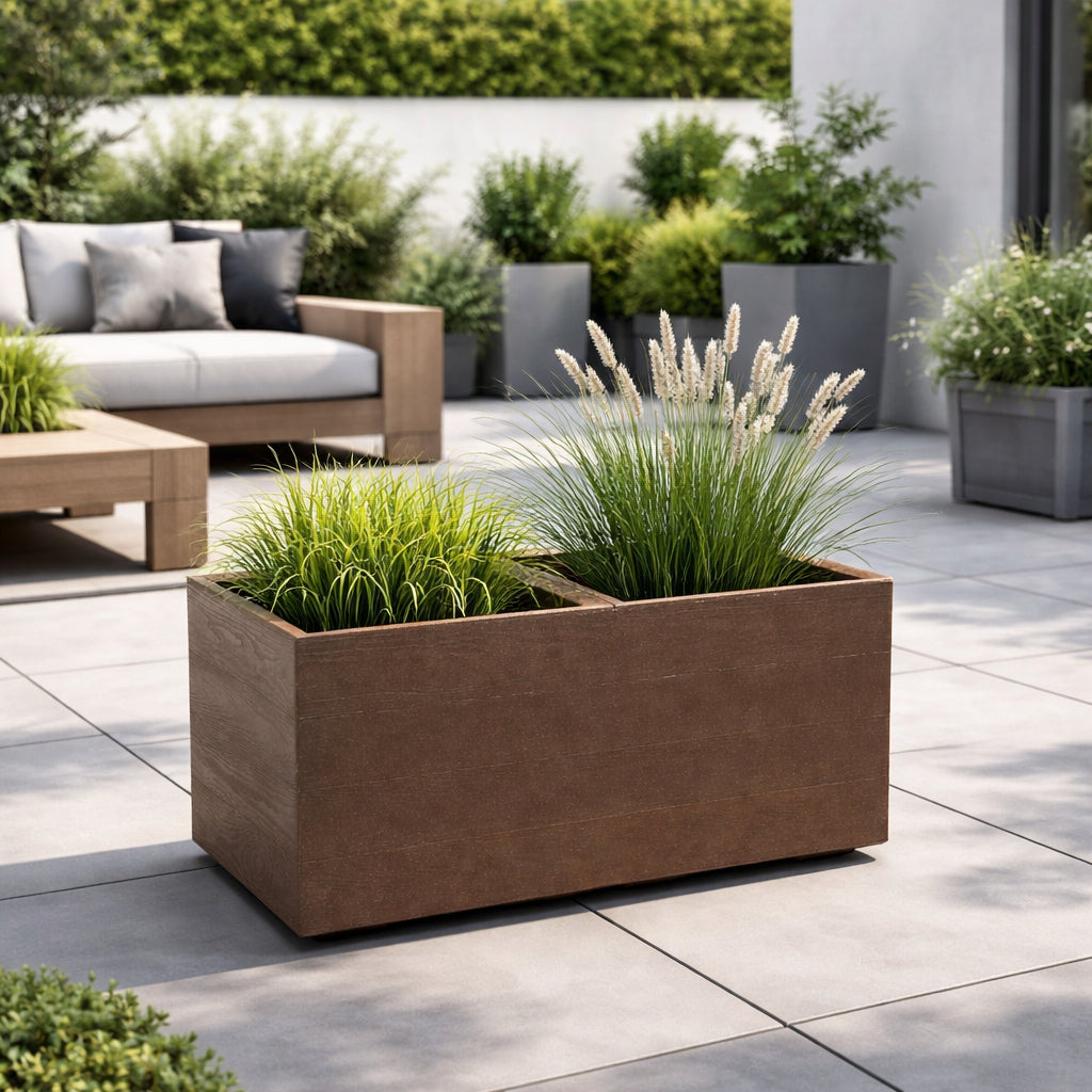Der Kreher XXL Pflanzkübel "ECO" vereint modernes Design mit Funktionalität und Nachhaltigkeit. Seine stilvolle Holzoptik in den Farben Kaffee Latte oder Espresso setzt elegante Akzente in jedem Garten, auf der Terrasse oder im Wohnbereich. Dank seiner robusten Fertigung aus recyceltem Kunststoff ist dieser Blumenkübel nicht nur umweltfreundlich, sondern auch langlebig, wetterfest und UV-beständig – perfekt für den ganzjährigen Einsatz im Innen- und Außenbereich.