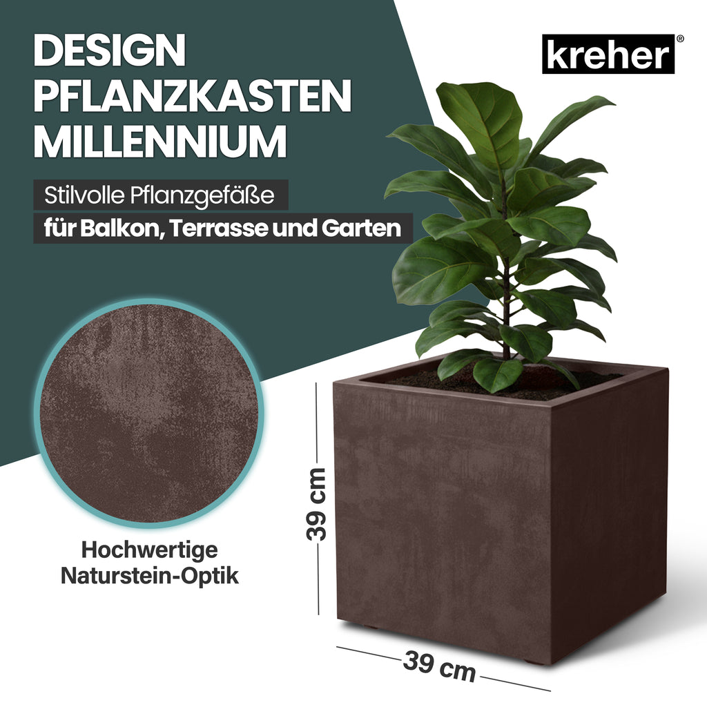 Kreher XL Pflanzkübel 'Millennium' 40 Liter, eckig in Braun