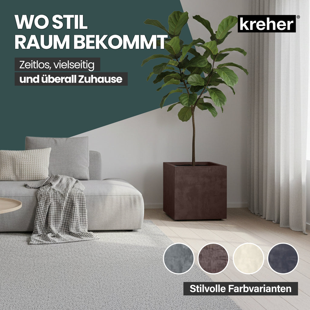 HOCHWERTIGES DESIGN IN NATURSTEIN-OPTIK - Der moderne Pflanzkübel überzeugt mit einer edlen, matten Oberfläche in stilvoller Beton- bzw. Naturstein-Optik. In den Farben Anthrazit, Grau, Braun oder Creme-Weiß fügt er sich harmonisch in jedes Balkon-, Garten- oder Wohnkonzept ein.
