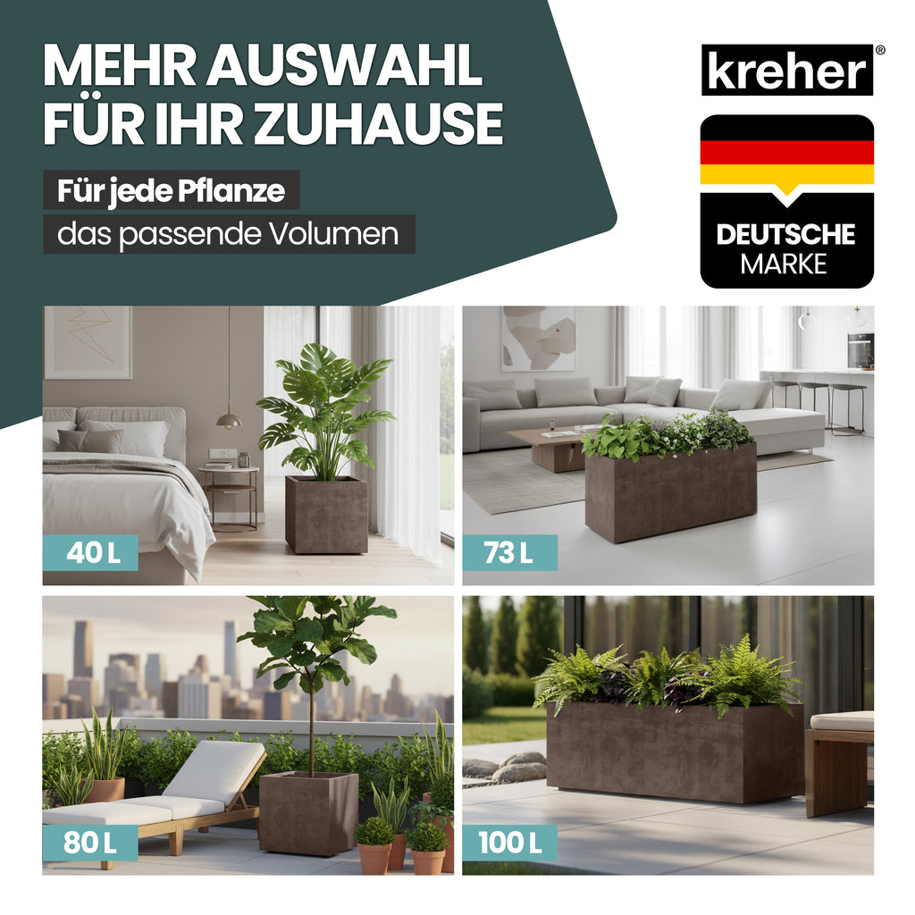 PRAKTISCH UND PFLEGELEICHT - Einfach abwaschbar und ideal für den Innen- und Außenbereich. Dank der großen Kapazität von ca. 93 Litern eignet sich der Pflanzkübel perfekt als Sichtschutz, Raumteiler oder Hochbeet für Gräser, Blumen oder Sträucher.