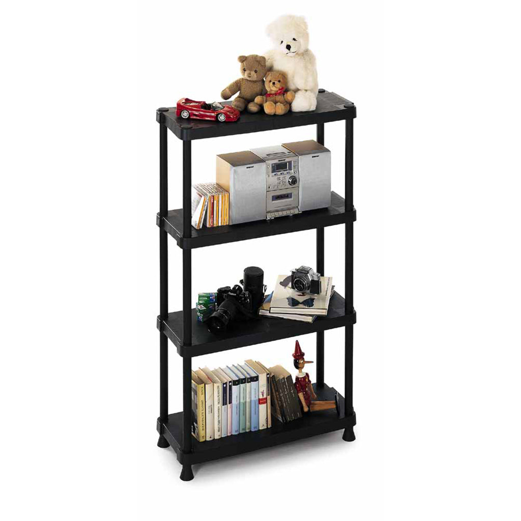 Lieferumfang: 2 Regale, Maße: 60 x 30 x 132 cm, 4 Böden, Traglast pro Boden: 25 kg, Gesamtbelastbarkeit: 100 kg, Farbe: Schwarz, Material: recycelter Kunststoff, Aufbau: Werkzeuglos, modular, Aufbauzeit: ca. 10 Minuten, Verpackung: Folienverpackt, Einleger, Qualitätssiegel: TÜV Rheinland