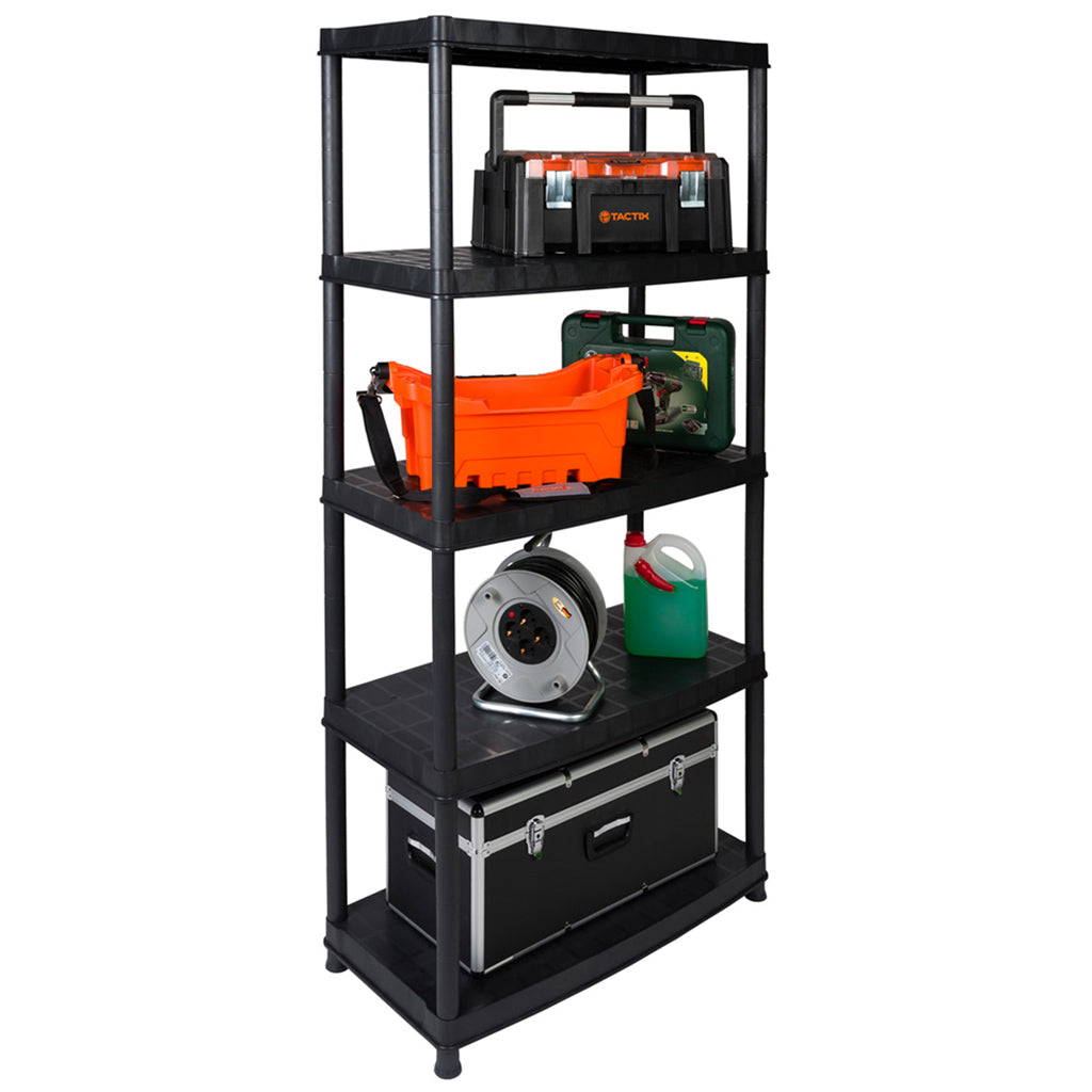 Abwaschbare, rostfreie Plastikregale mit intelligentem Stecksystem. Ideal für Werkzeuge, Ausrüstung, Reinigungsmittel oder Schuhe - optimierter Stauraum von Haushalt bis Garten.
