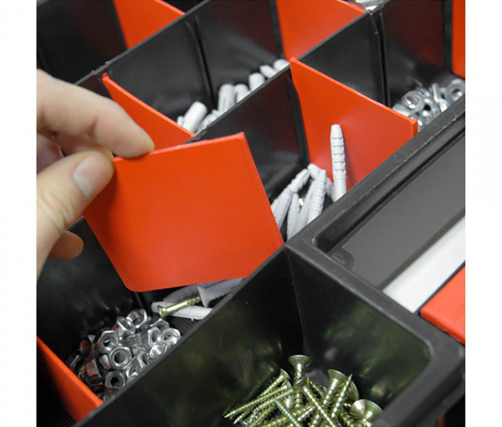 Stapelbar und kompakt, optimiert dieser Organizer Ihren Stauraum. Ideal für beengte Werkstätten, Hobbyzimmer oder zur Lagerung von Schrauben und Muttern.