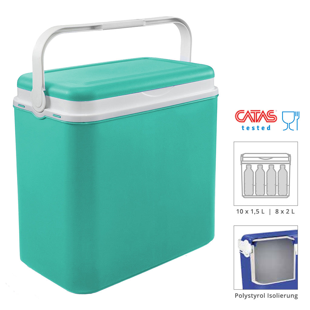 Unsere geräumige 36-Liter Kühlbox präsentiert sich in einem lebendigen Türkis, das sowohl Eleganz als auch Funktionalität in einem schlichten Design vereint. Sie ist der perfekte Begleiter für lange Tage im Freien, sei es beim Camping, am Strand oder einfach als modisches Accessoire für den täglichen Gebrauch.