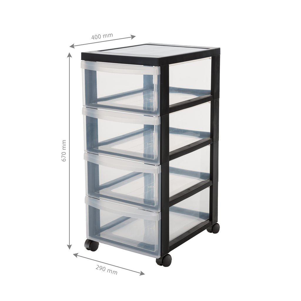 Rollwagen mit 4 großen Schubladenelementen (Schwarz/Transparent)